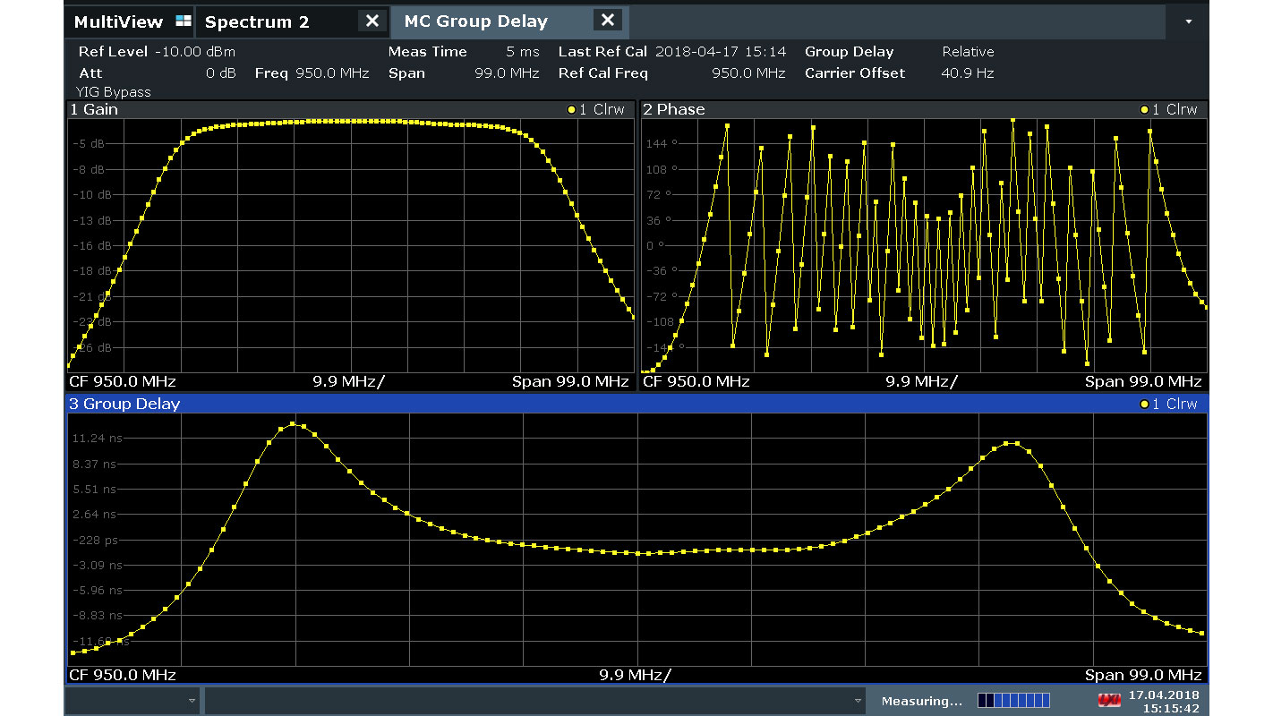 FSW提供专用测量应用以用于关键测量任务,例如群延时、线性度、增益转移和噪声功率比(NPR)等。它还可解调符合DVB-S2X和OneWeb等不同标准的卫星射频信号。FSW的分析带宽高达8.3GHz并且可扩展,满足对信号带宽的更高需求。