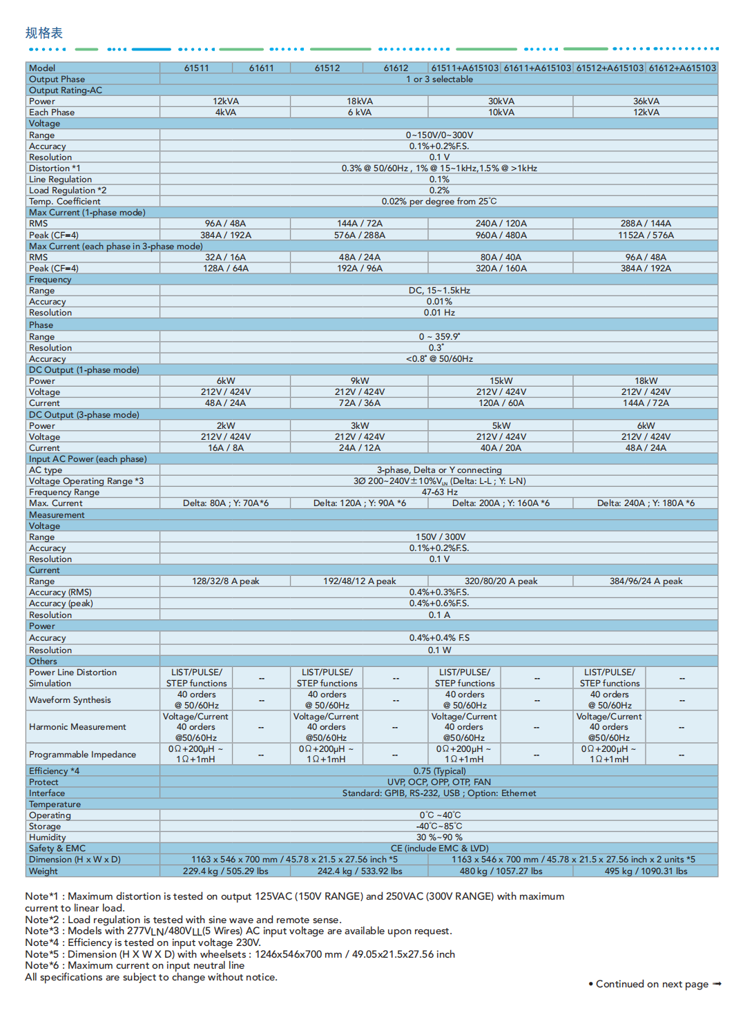 Chroma进阶可编程交流电源MODEL61511/61512/61611/61612