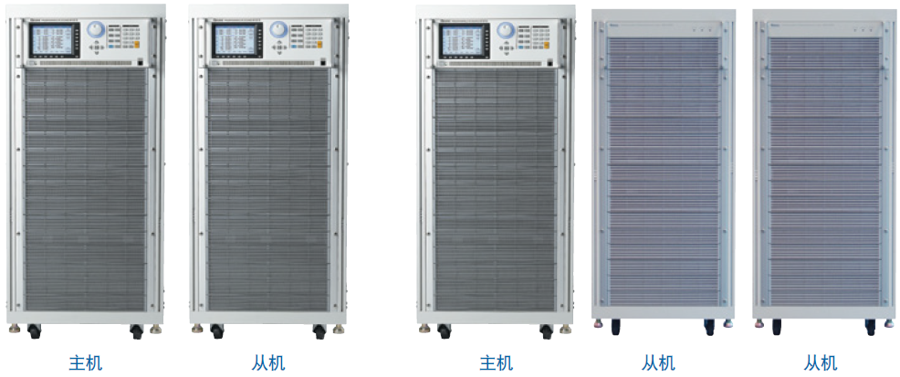 Model 61501/61502/61503/61504/61505机种则可以使用三台单机,在三相模式的同步机制下串联成三相电输出使用。