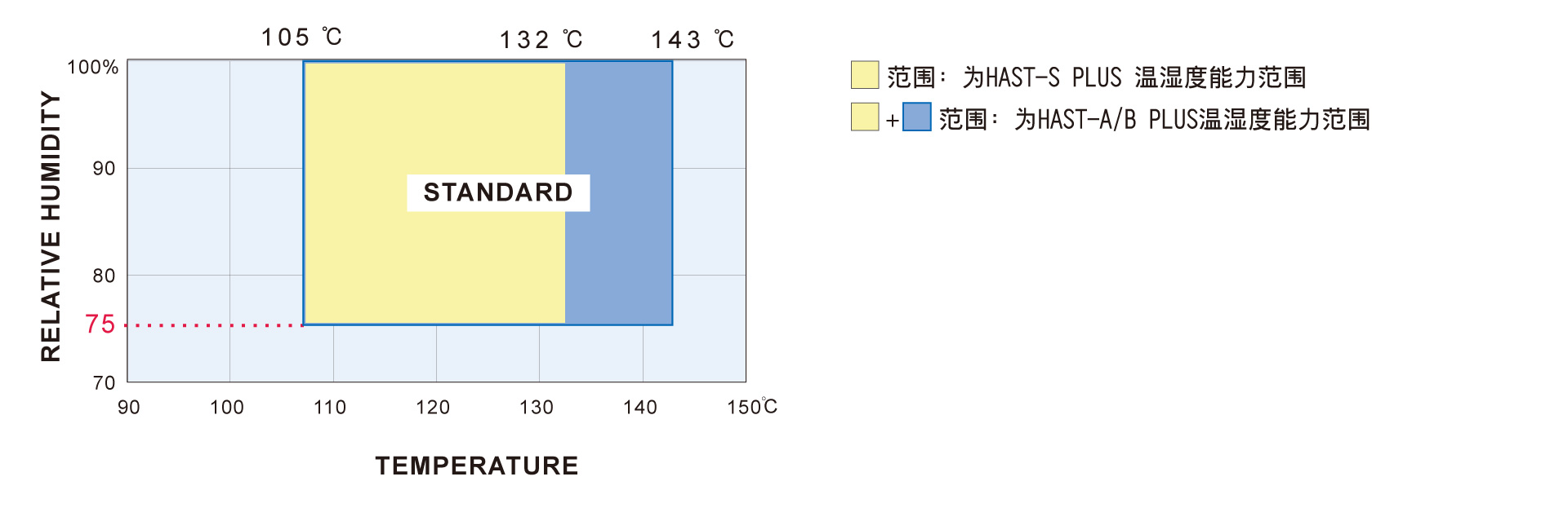 可满足IEC60068-2-66、JESDEC-A110、A118规范要求,3种控制模式包含:不饱和控制(乾湿球温度控制)、不饱和控制(升温温度控制)、湿润饱和控制。