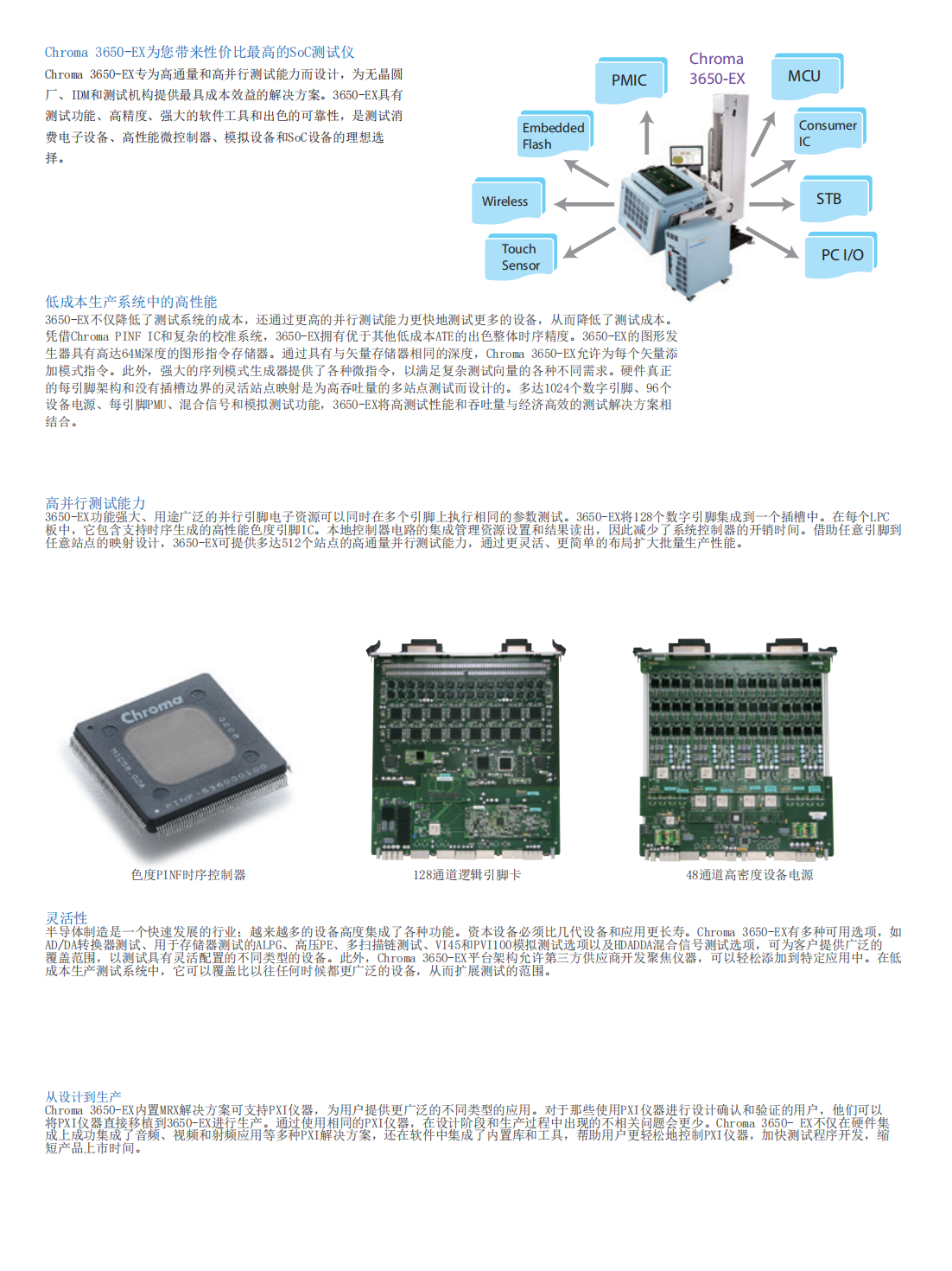 3650-EX 不仅降低了测试系统的成本,还通过更高的并行测试能力更快地测试更多的设备,从而降低了测试成本。