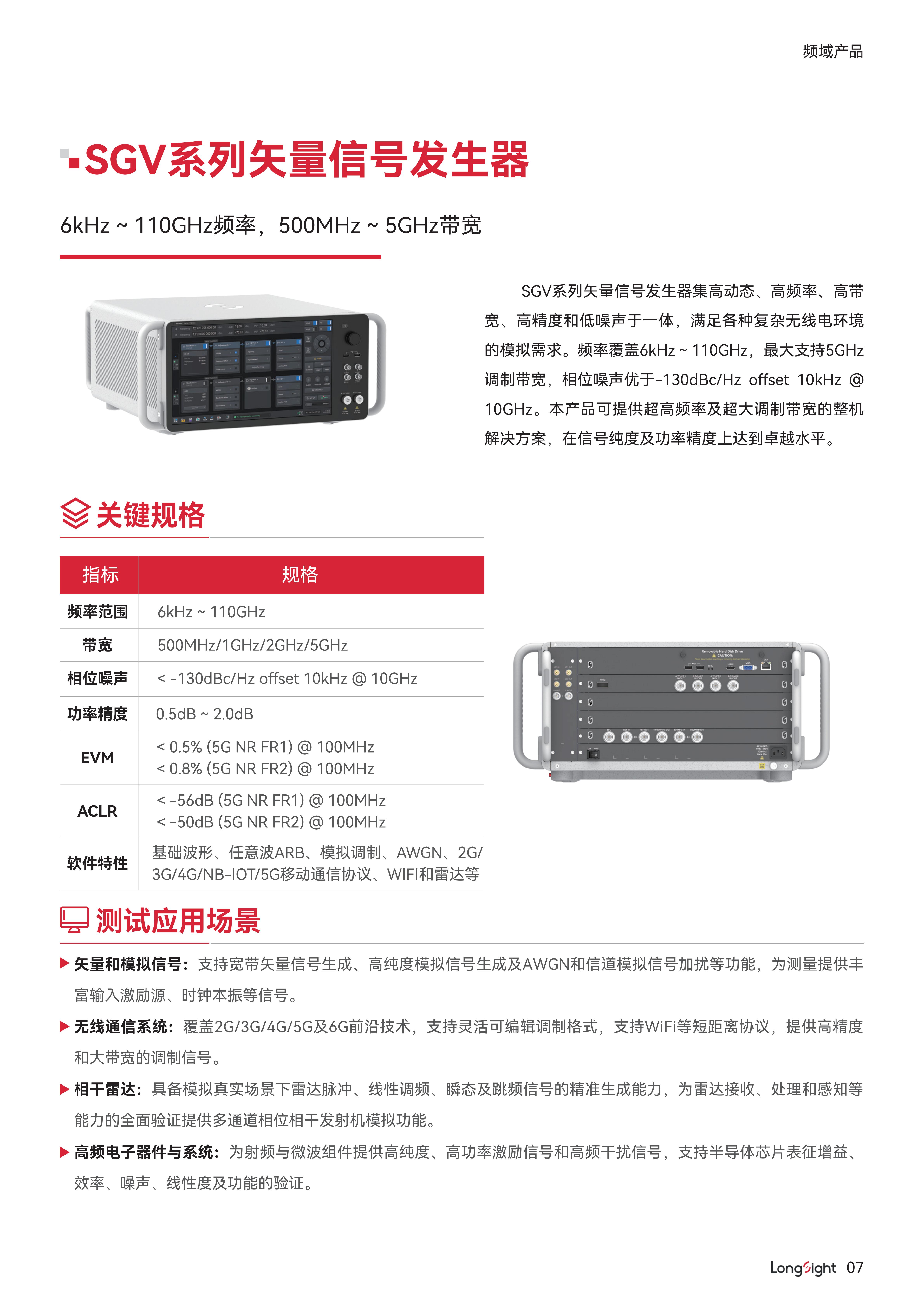 名  称:Longight万里眼SGV 系列矢量信号发生器